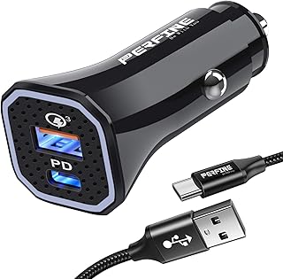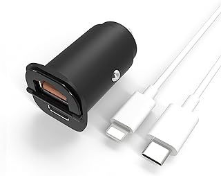 USBカーチャージャー 20W PD 3.0 + 18W QC 3.0 2ポート Bawanfa 最大出力38W 急速充電 シガーソケット USB-C to L-ightn-ingケーブル付き usbシガー 12V/24V車対応 i-Phone/Galaxy/Android/i-Padスマホなど対応(ブラック)