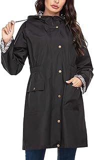 LOMON レディース レインコート 軽量 防水 アウトドア フード付き ロングレインジャケット ウィンドブレーカー