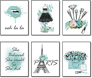 グラムティール ウォールアート プリント 6個セット 香水ボトル 花の唇 キャンバス メイクアップ ポスター ハイファッションデザイン パリ アートワーク 寝室 装飾 レディース 女の子の部屋の装飾に (11インチ x 14インチ フレームなし グラムティール)