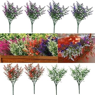 8束 造花 屋外 ラベンダー フェイクフラワー UV耐性 人工プラスチック植物 色あせない 緑のブッシュ ガーデン 玄関 玄関 窓 ボックス 横向き テラス 暖炉 ホーム ファームハウス 装飾